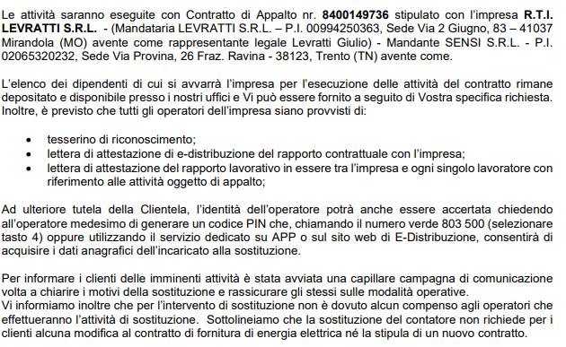 AVVISO ALLA CITTADINANZA: SOSTITUZIONE CONTATORI ENERGIA ELETTRICA