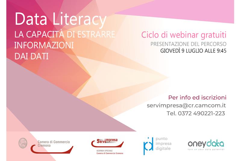 Camera di Commercio. Evento di presentazione del percorso formativo gratuito Data Literacy: la capacità di trarre informazioni significative dai dati