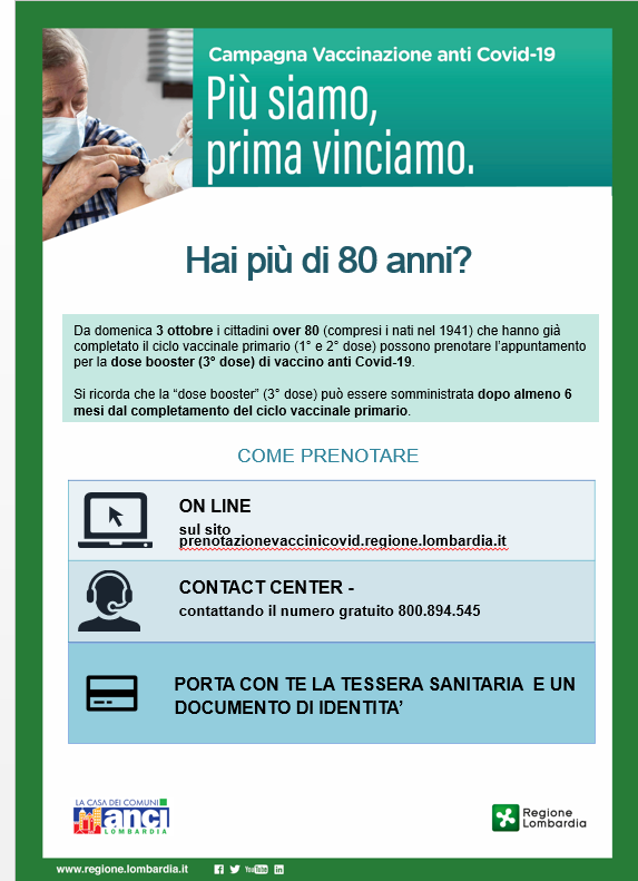 CAMPAGNA VACCINALE ANTI COVID-19 - 3° DOSE OVER 80