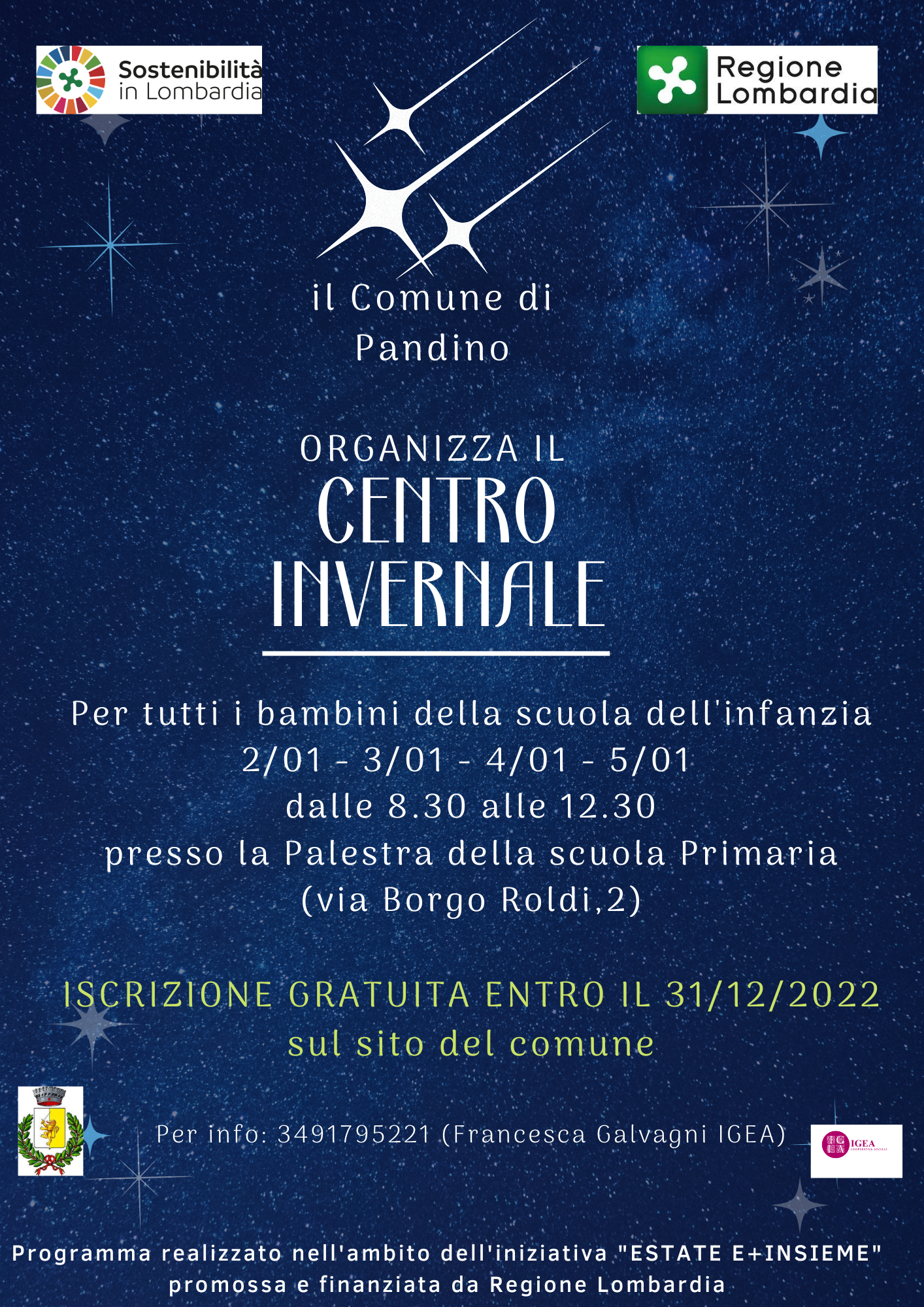 "Centro Invernale"gratuito per i bambini della scuola dell'infanzia, dal 02.01.2022 al 05.01.2022, dalle 8.30 alle 12.30.