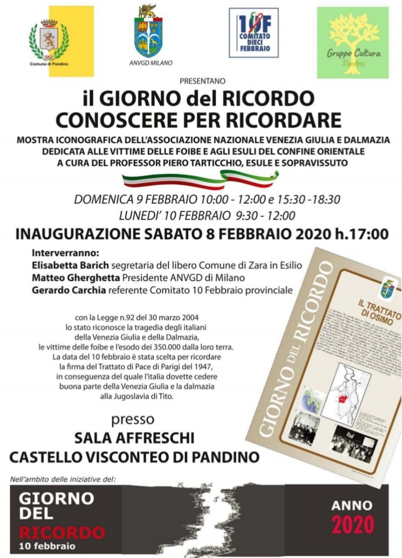 Il Giorno del Ricordo Conoscere per ricordare - inaugurazione sabato 8 febbraio 2020 ore 17.00 presso sala affreschi