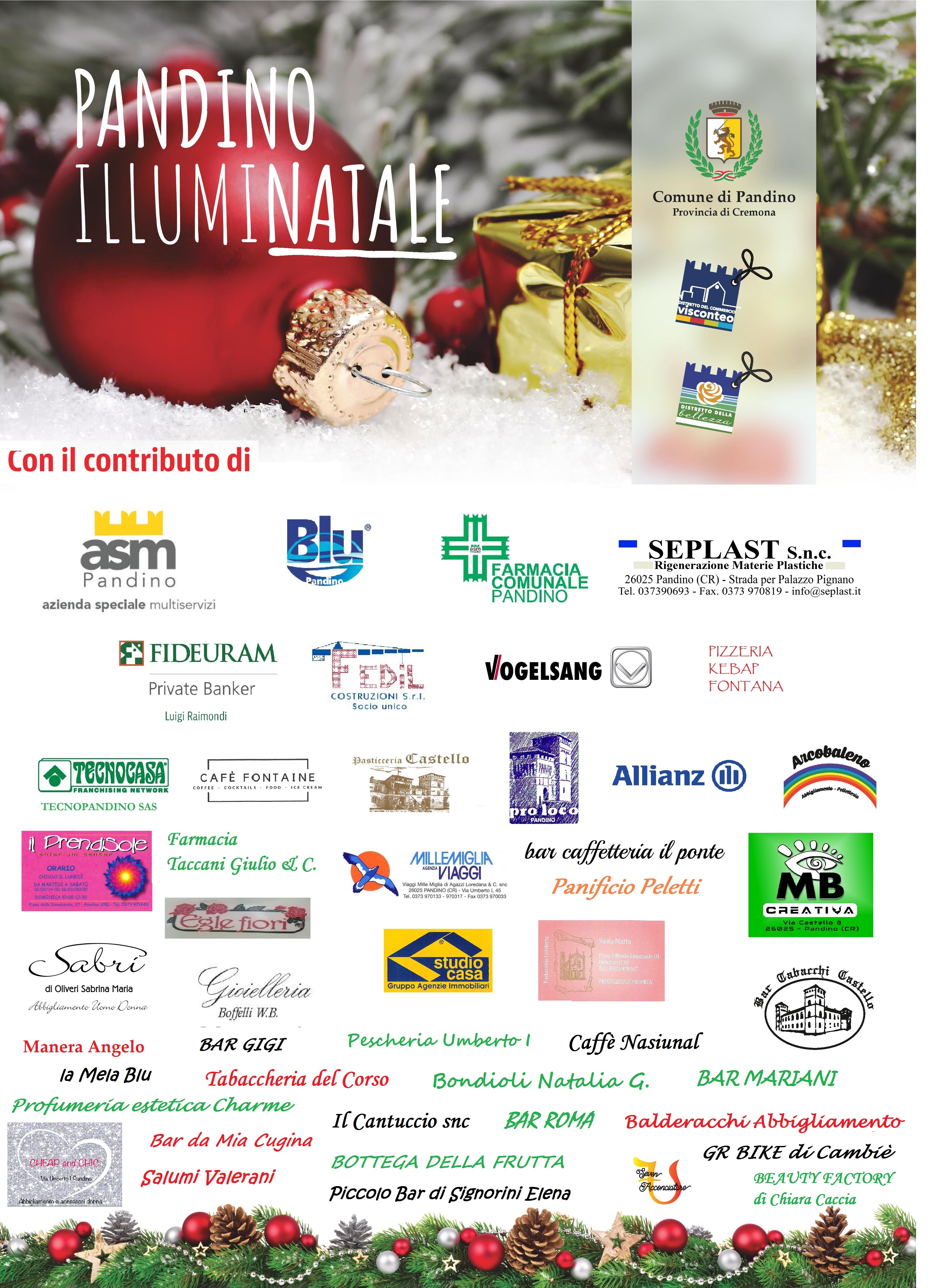 Un sincero ringraziamento a tutti gli Sponsor che hanno contribuito ad illuminare il Natale 2019 a Pandino!!