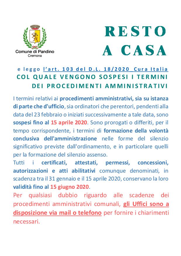 RESTO A CASA: I PROCEDIMENTI AMMINISTRATIVI SONO PROROGATI