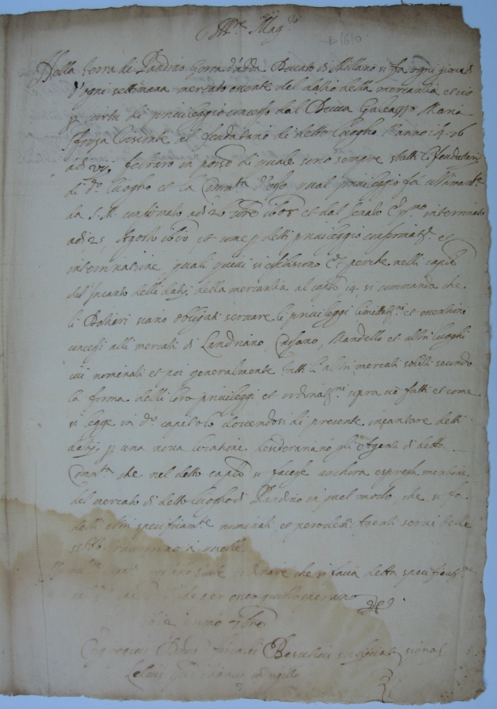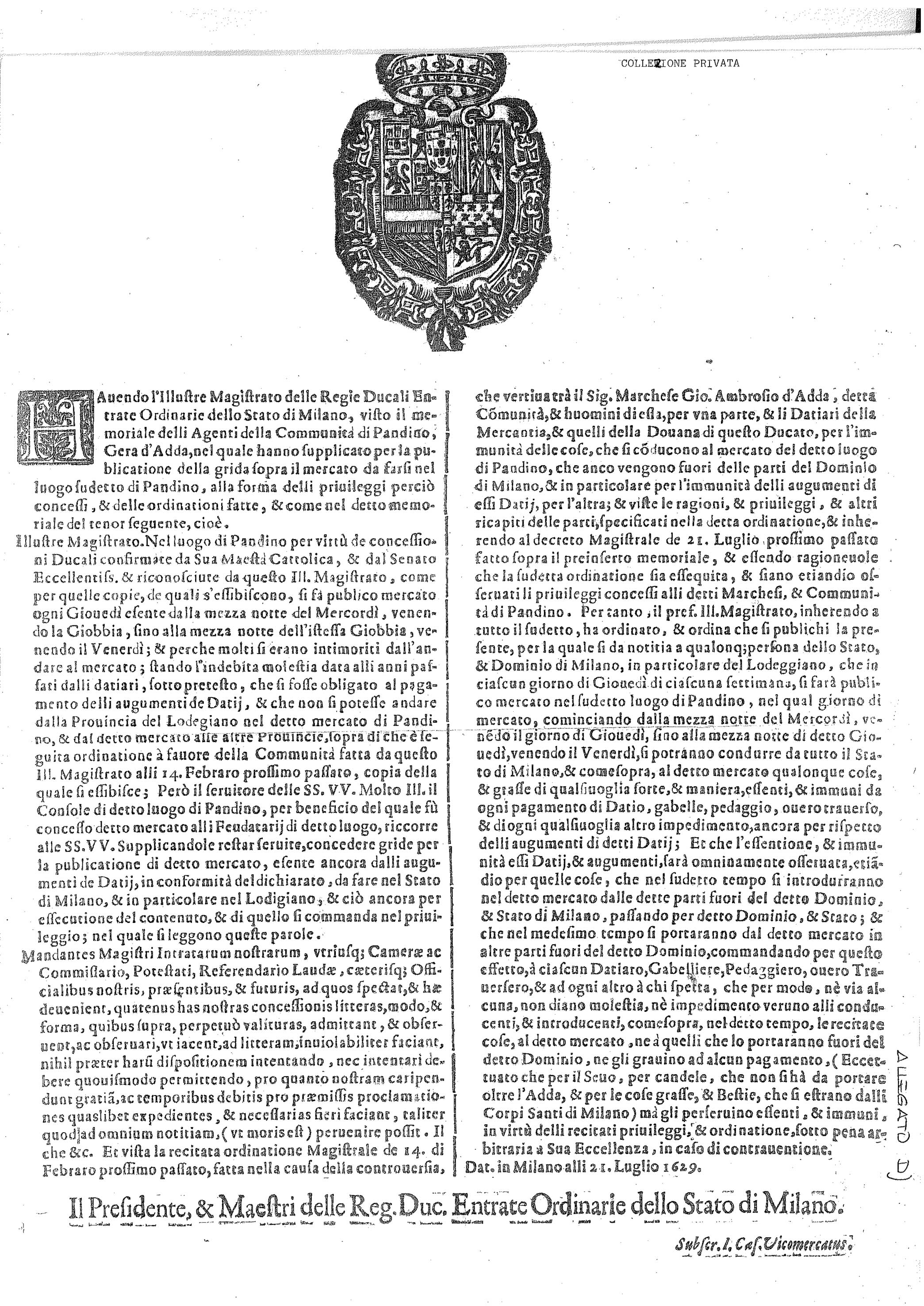 Per l’istituzione di questo mercato il Duca concedette addirittura un ampia esenzione dei dazi per il giorno di suo svolgimento, su richiesta degli abitanti di Pandino e mercè l’intercessione del feudatario.