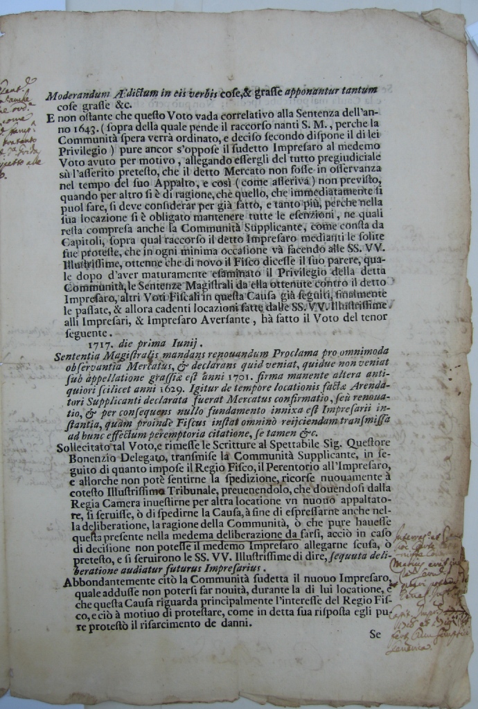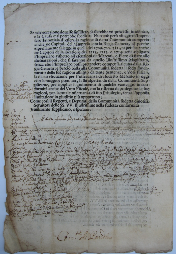 Dai documenti in possesso di questo Comune, in allegato sotto le lettere a), b), c), d), e), si evince chiaramente che il mercato è stato confermato in epoche successive garantendo la sua continuità dalla data di istituzione sino ai giorni nostri.