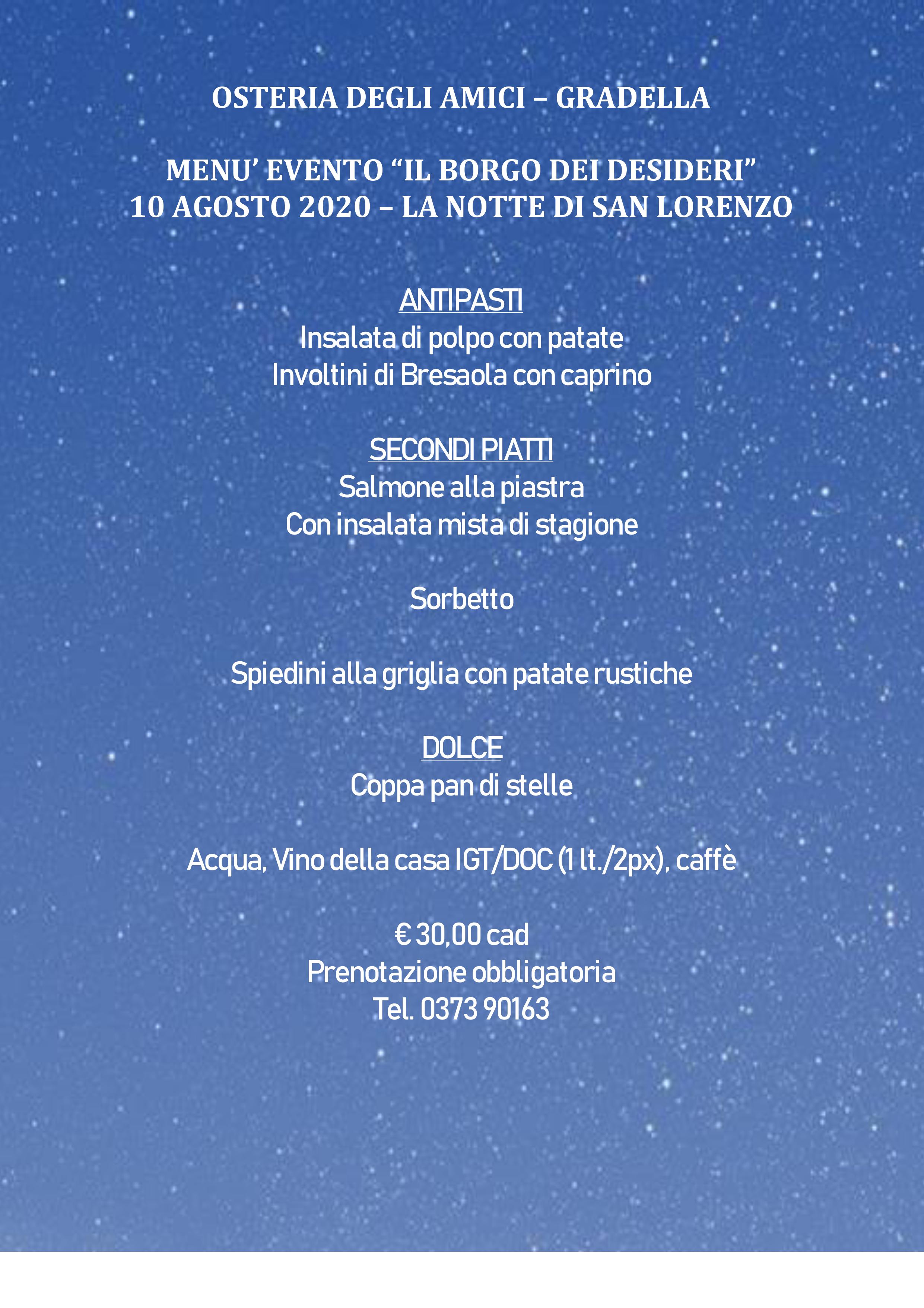 per la serata del 10 agosto 2020