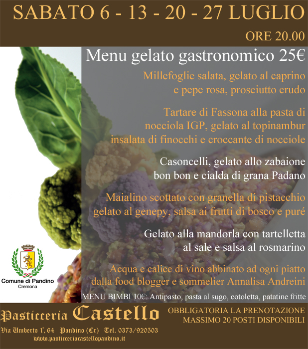 CENA GELATO GASTROMICA ORGANIZZATA DALLA PASTICCERIA CASTELLO DI PANDINO ORE 20.00