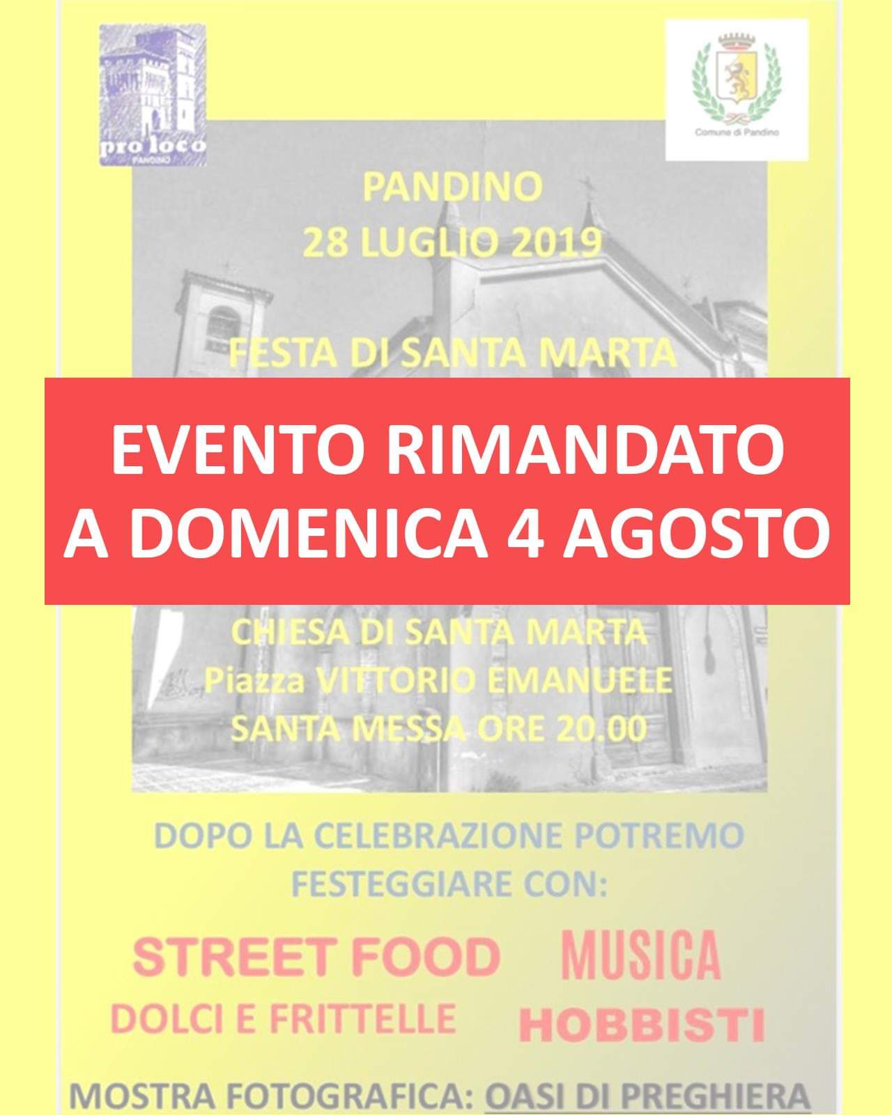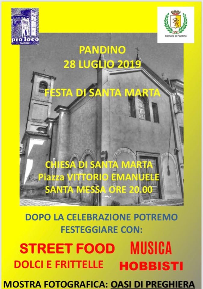 LA PRO LOCO DI PANDINO ORGANIZZA LA TRADIZIONALE FESTA DI SANTA MARTA IN PROGRAMMA PER DOMENICA 4 AGOSTO 2019