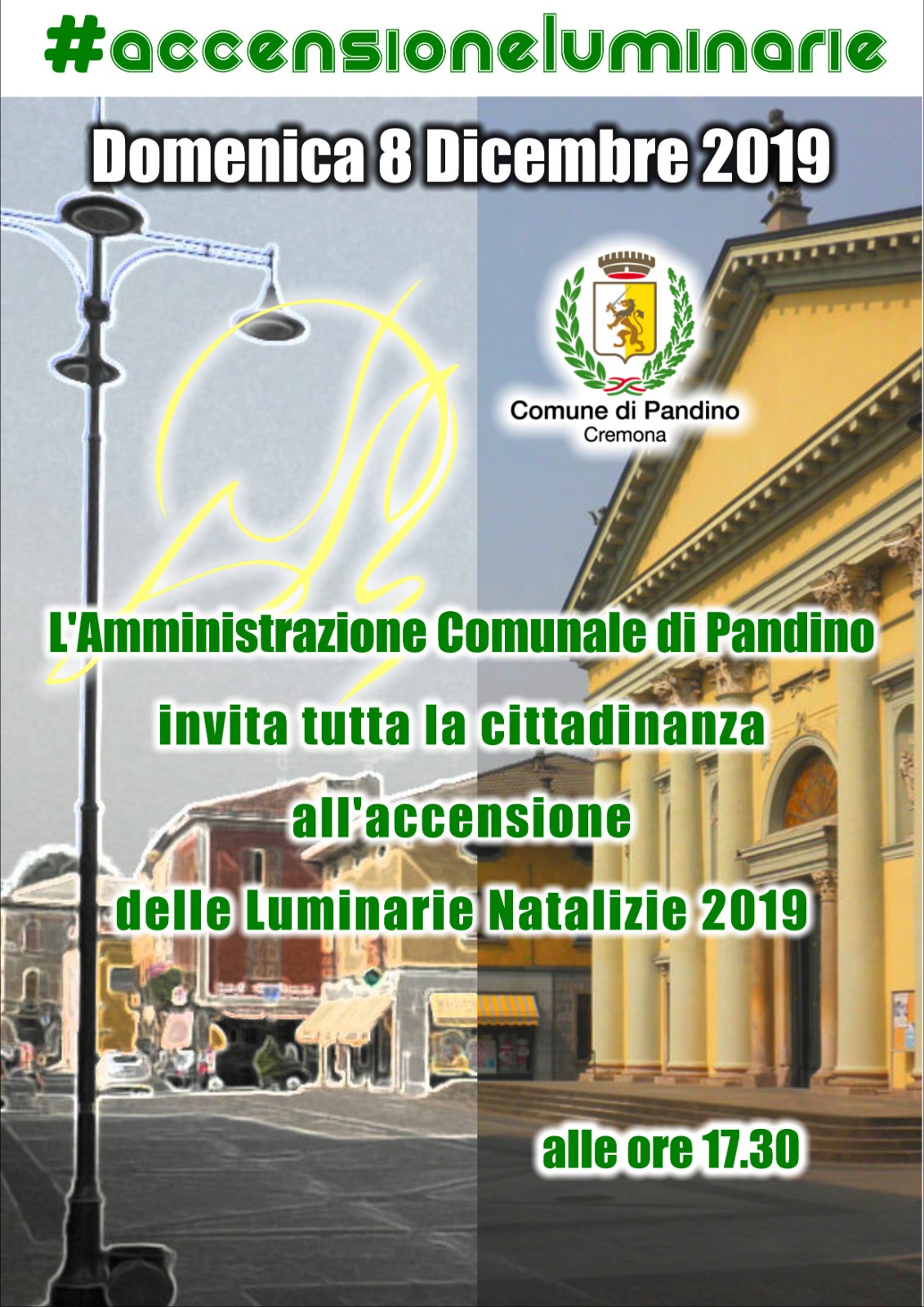Ore 17.30 L'amministrazione Comunale di Pandino invita tutta la cittadinanza all'accensione delle Luminarie Natalizie 2019, presso Via Umberto I