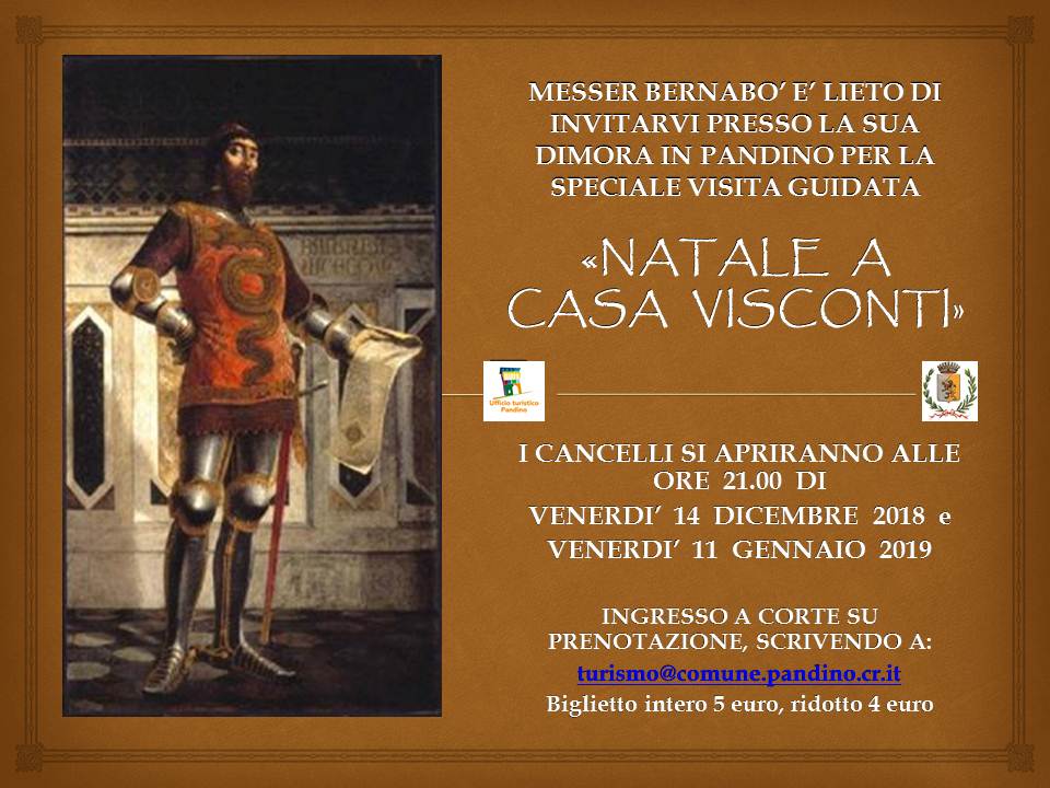 Messer Bernabo' è lieto di invitarvi presso la sua dimora in Pandino per la visita guidata "Natale a Casa Visconti" alle ore 21.00.