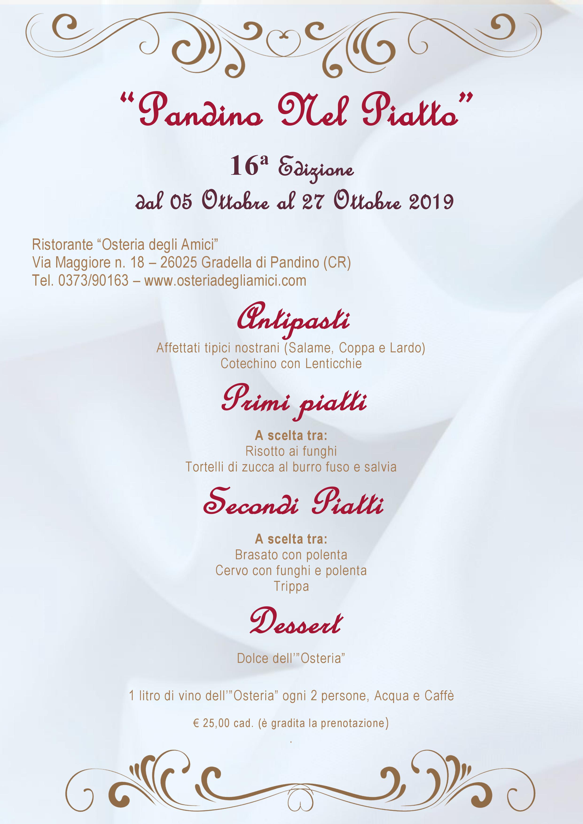 Menù Ristorante "Osteria degli Amici" Gradella: