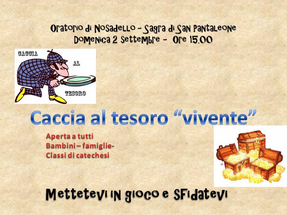 - ore 15.00 CACCIA AL TESORO "VIVENTE" per grandi e piccoli