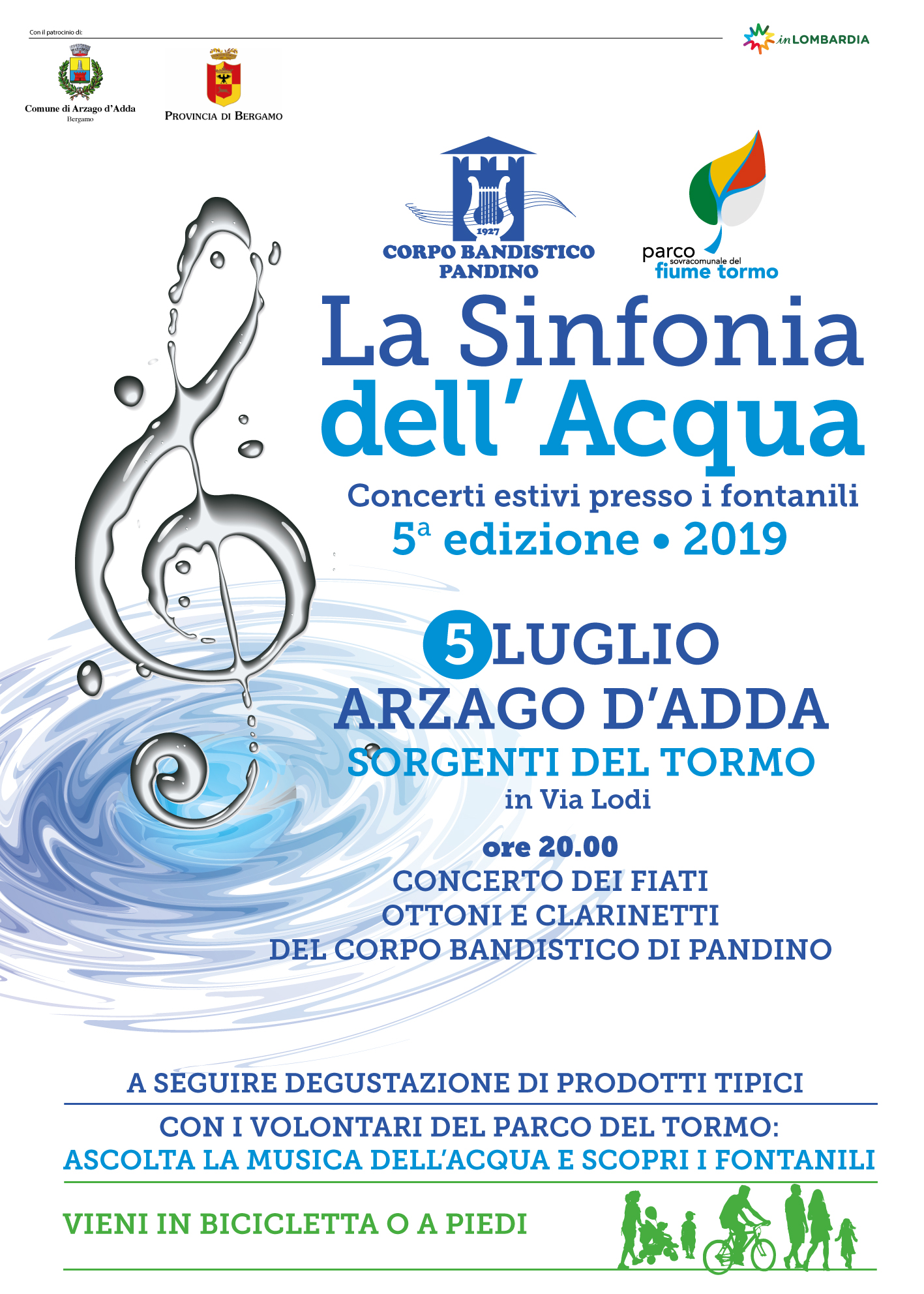LA SINFONIA DELL'ACQUA Venerdì 5 LUGLIO ad ARZAGO D'ADDA via Lodi , SORGENTI DEL TORMO per l'esibizione di fiati ottoni e clarinetti del Corpo Bandistico di Pandino.